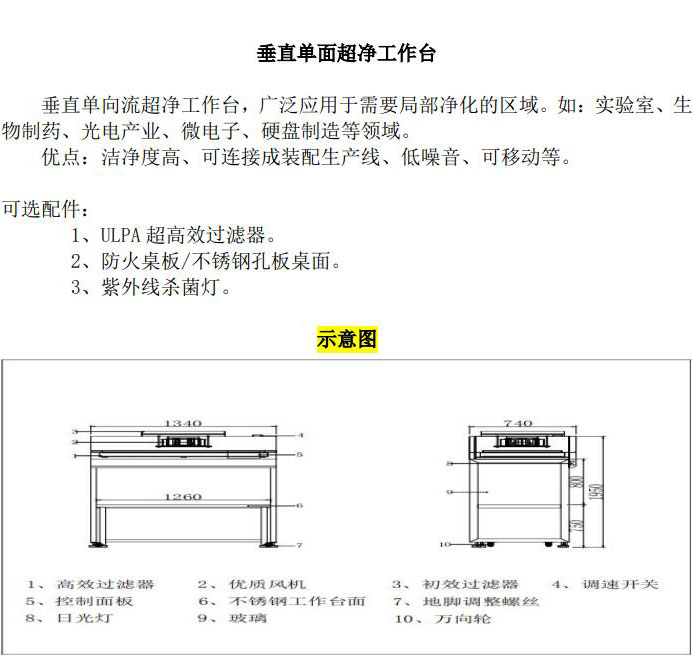 水平单面超净工作台,是一种通用性极强的局部百级洁净工作台,它广泛用于电子、国防、精密仪器、仪表、制药等行业。